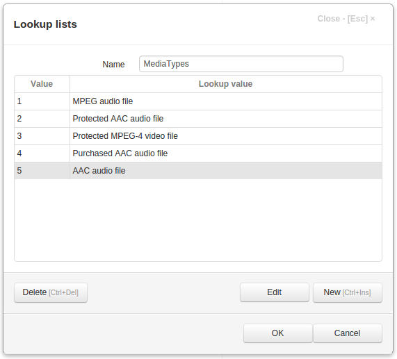 Then use the Edit/New buttons to edit/add a lookup pairs to the list.